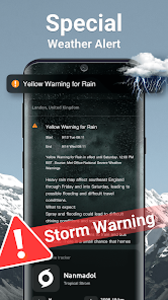 يمكن أيضًا استخدام تطبيق Weather Forecast كأداة تعقب للعواصف. باستخدام هذا التطبيق ، يمكنك رؤية موقع العاصفة والحصول على إشعار عندما تصبح الحالة شديدة. يمكنك أيضًا استخدامه لمعرفة وقت حدوث المطر أو العاصفة الرعدية التالية.